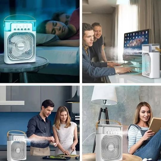 USB Electric Summer Table Cooling Fan with Humidifier and Color Lighting. The Fan comes in Diffrent colors Dispatching on stock availability
