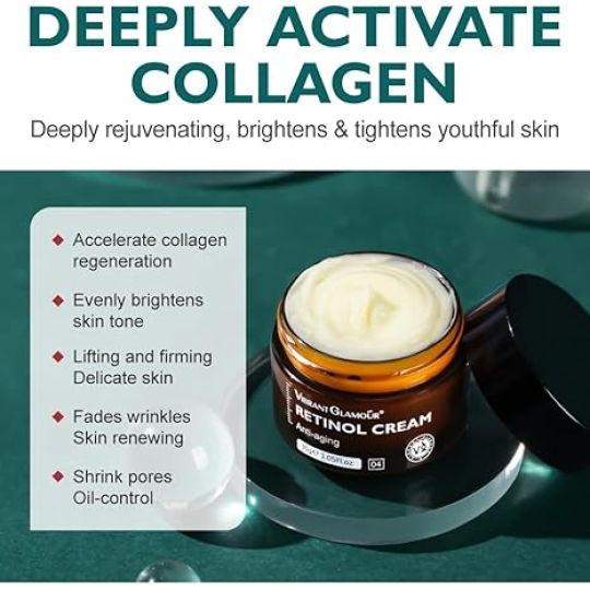 Vibrant Glamour Retinol Face Cream for Skin Care, Firming, Plumping, Anti-Aging, Hydrating, Regenerating and Minimizing Skin Pores, Reduce Oil but Moisturizes