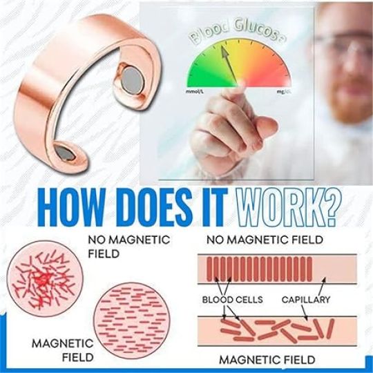 Blood Sugar Control Ring, 2/4Pcs Adjustable Blood Glucose Control Ring, Therapeutic Magnetic Therapy Ring Pain Relief for Arthritis, Blood Flow and Carpal Tunnel