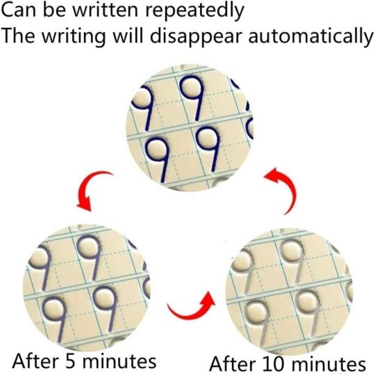 Handwriting will automatically disappear after drying. It's a replacement for dry erase tracing books and reusable writing paper/board/pad The calligraphy workbook for beginners have three-dimensional groove design, standard writing format, guiding beginners to practice standard fonts